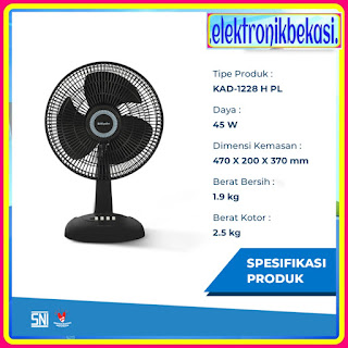 KAD-1228 H PL memiliki tampilan berwarna Hitam bernuansa elegan. Sebagai penunjang desain, KAD-1228 H PL dilengkapi tampilan tombol kecepatan berbentuk Push Button untuk mengatur kecepatan kipas dengan 3 pilihan speed level. Sangat cocok ditempatkan di tiap sudut ruangan rumah.